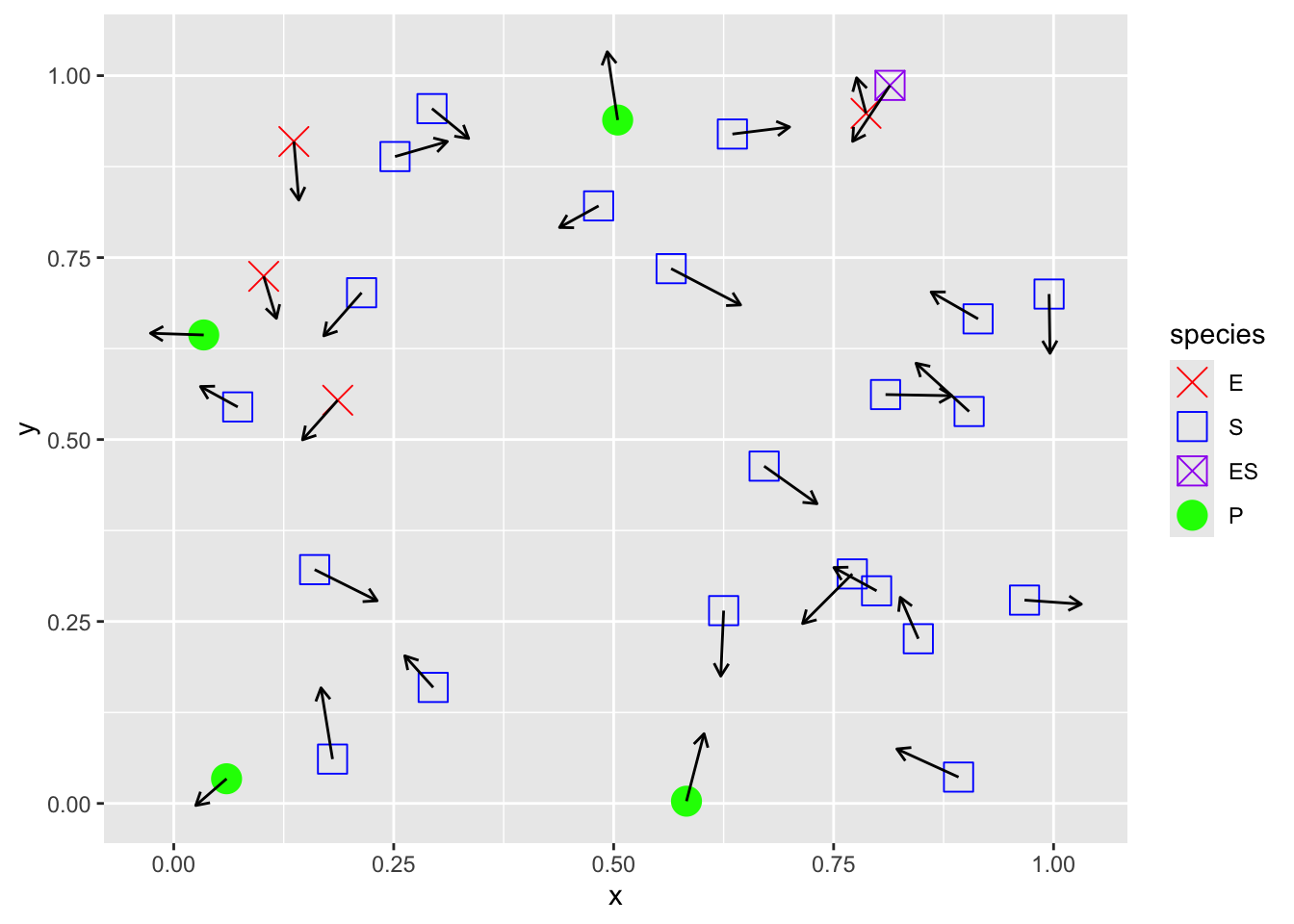 Pre <-rbind(# E S ES Pc(1, 1, 0, 0),c(0, 0, 1, 0),c(0, 0, 1, 0))rownames(Pre) <-c("I","II","III")colnames(Pre) <-c("E","S","ES","P")Pre