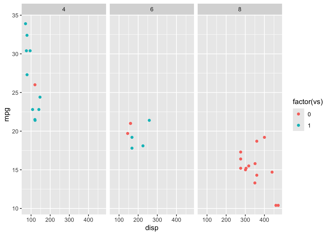 facet_wrap( ~ cyl)