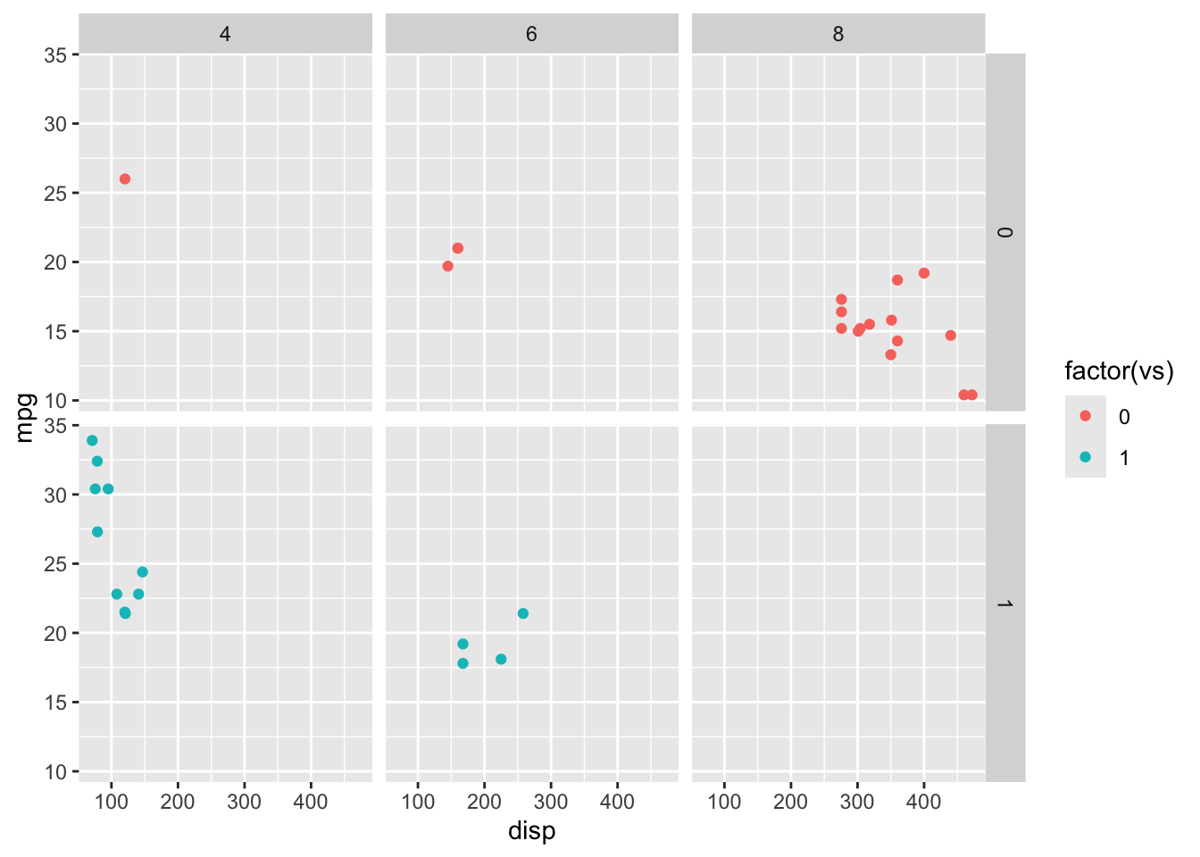 facet_grid(vs ~ cyl)