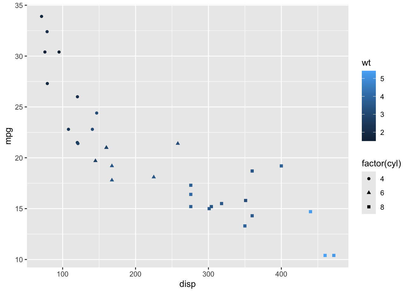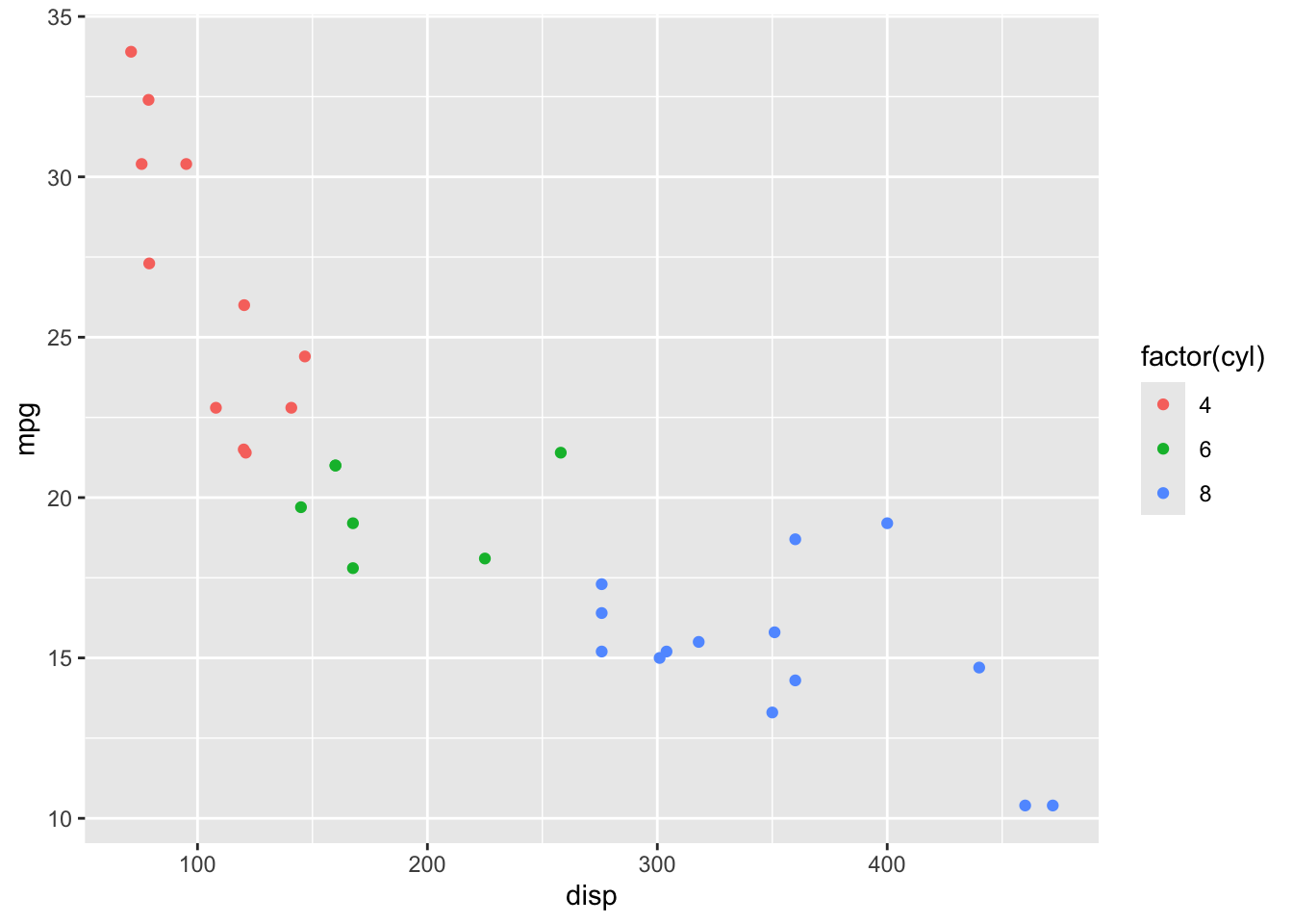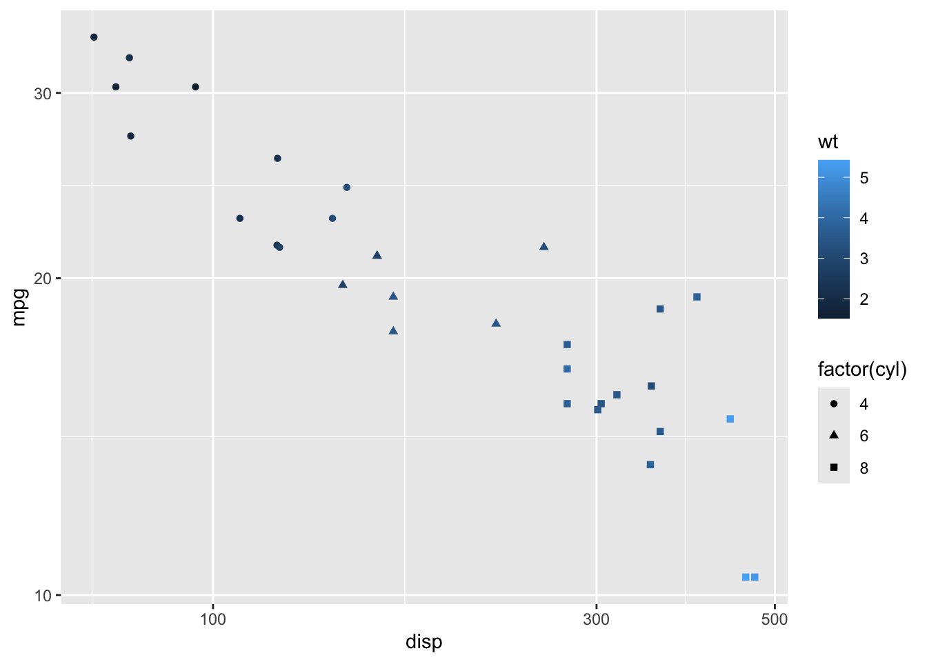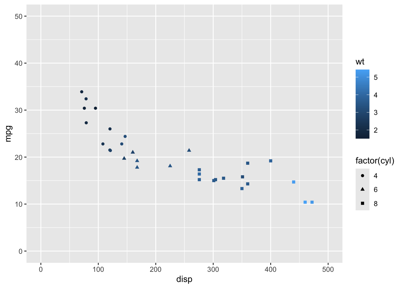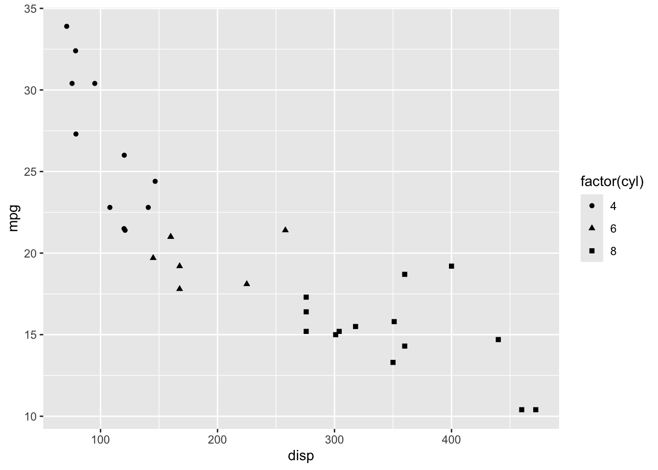 aes(x     = disp,