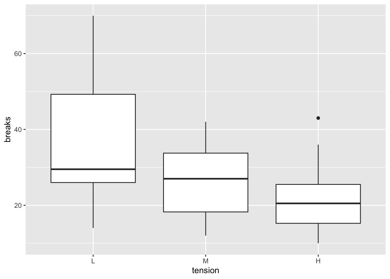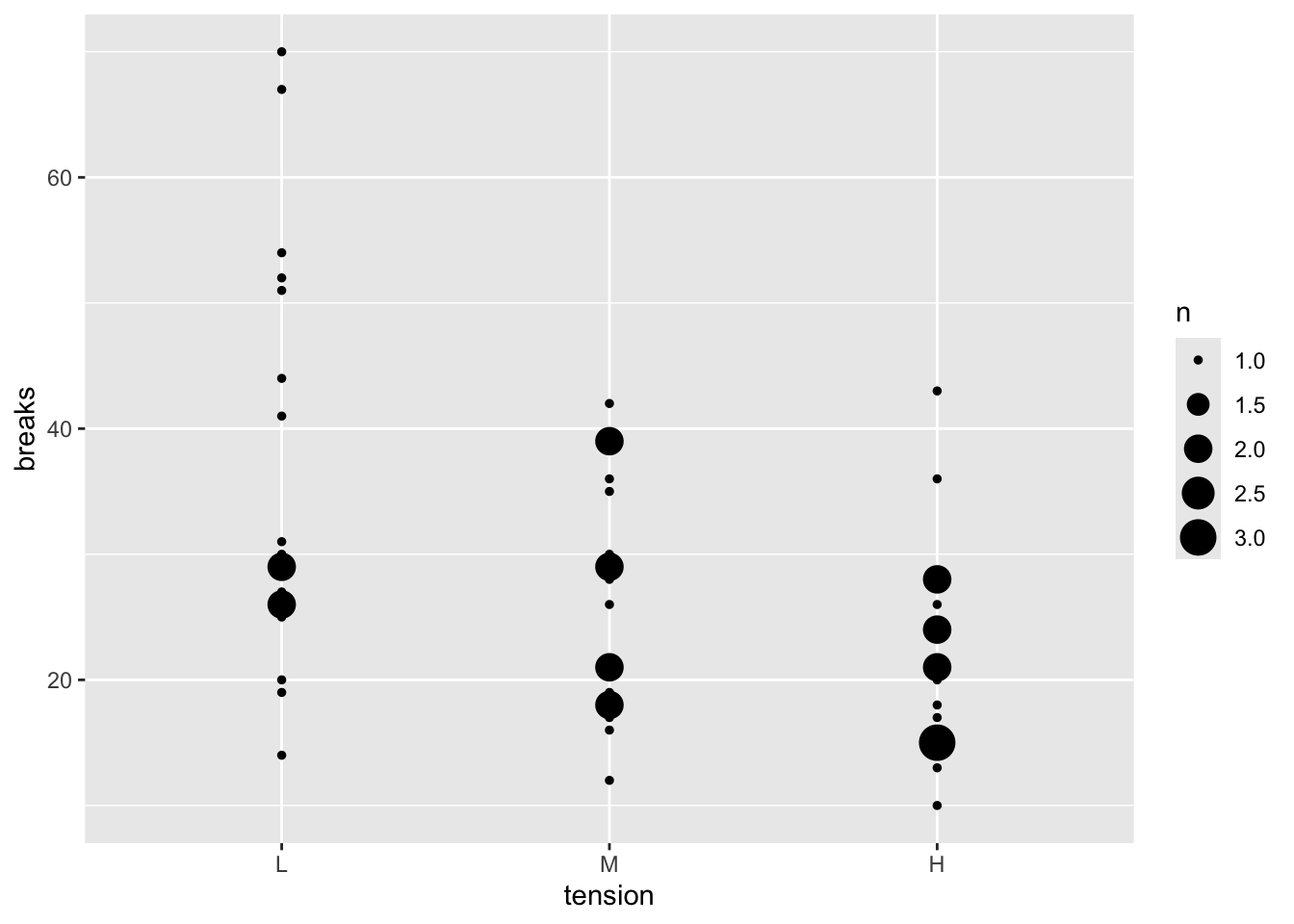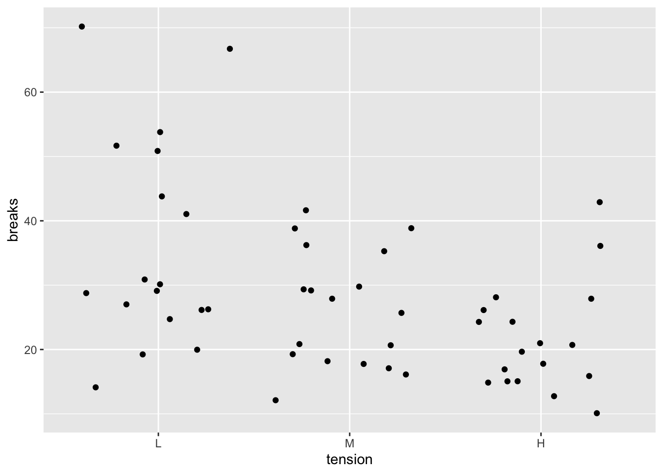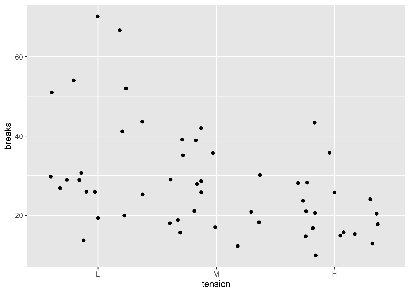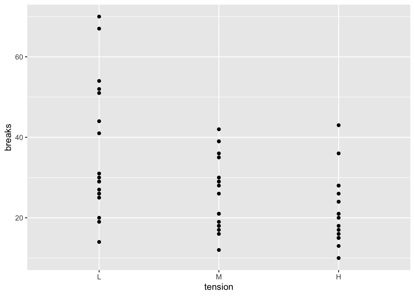 Suppose we would like to make a plot of the number of breaks (y-axis) vs the tension. To do so, we can use the code below.